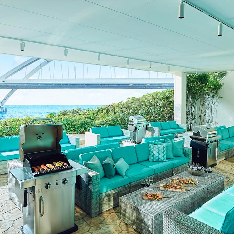 海辺に佇むシーサイドレストラン。贅沢な景色とともに、最先端のグリルで焼き上げる本格BBQが楽しめます。